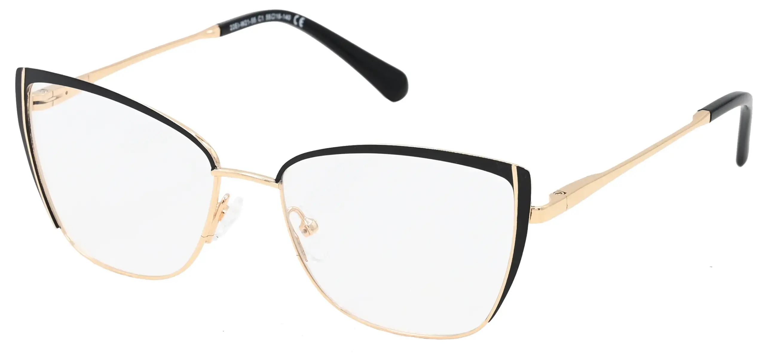 A cicás formájú fém szemüveg nőies és kifinomult kisugárzást ad. A felfelé ívelő sarkok játékos, mégis elegáns hatást keltenek, míg a fém kivitel könnyedséget és finom csillogást visz a megjelenésbe. Tökéletes azoknak, akik szeretik a modern eleganciával.
